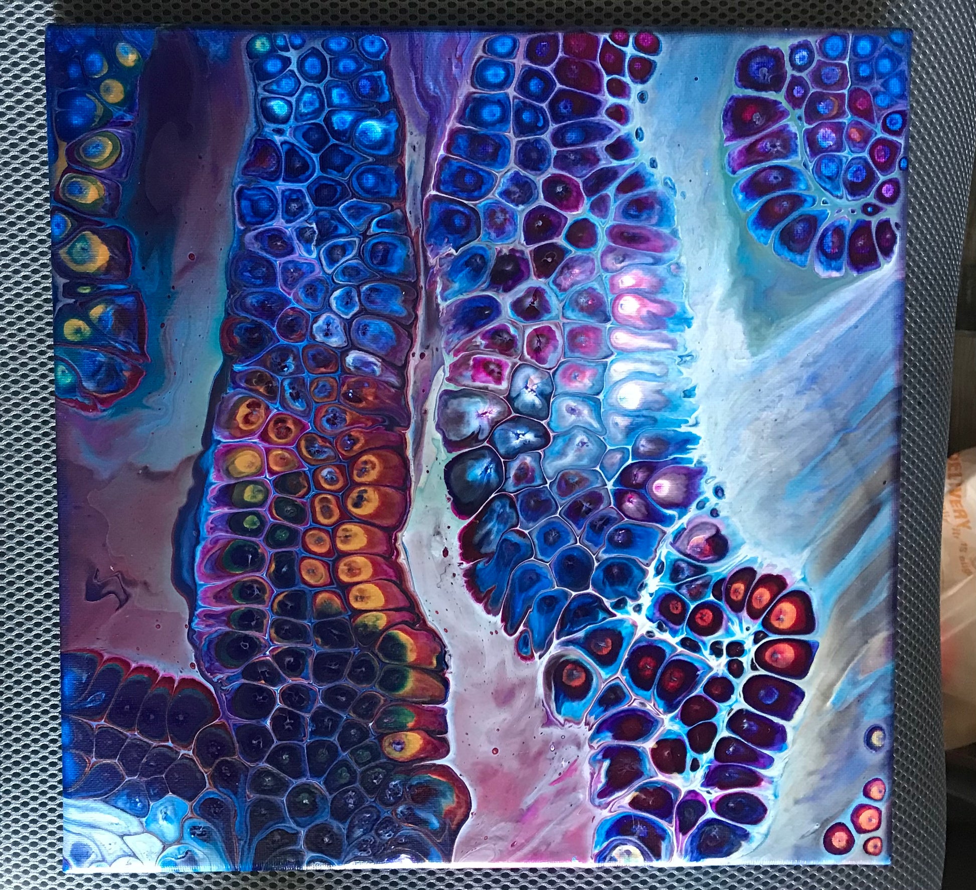 12x12” Chamelian cell Acrylic on canvas, Varnished, product comes with ready to hang fittings.