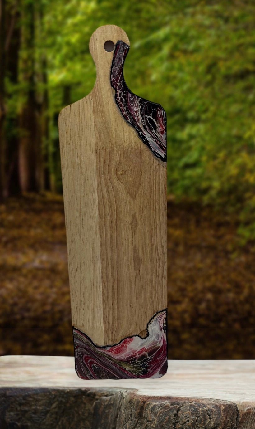 Bamboo baguette board with acrylic pour accent. Product size 16'' x 4.5''